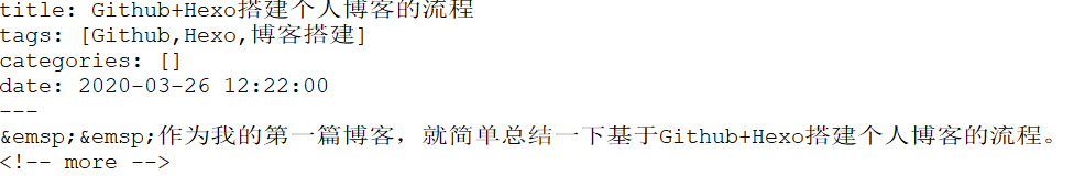 1 | title: Github+Hexo搭建个人博客的流程 #博文的题目 |