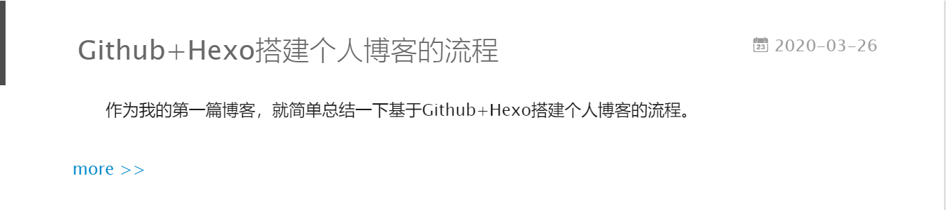 踩坑:我的第一篇博文按上述内容书写完成后,进行了部署,但是发现博客上的图片消失了,找了半天原因,最终发现是“截断文字”的锅,如果不进行截断,文中的图片能够正常显示,但是截断后则不能。最后发现原因是添加截断后,生成了新的.html文件,导致原先的图片路径对应不上,所以读不到图片。